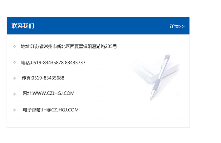 地址:常州市新北區友邦商務大廈1幢16、17層  電話:0519-85101652  傳真:0519-85112595  郵編:213022  網址:www_cz-jiayue_cn.rendanongye.com  郵箱:xiajifengaa@163.com